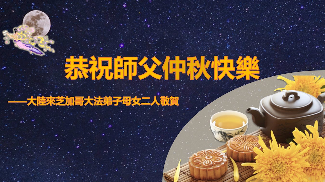 尊敬的师父好! 千言万语也无法表达弟子对师尊的感恩。弟子一定努力走好师父安排的修炼路。 恭祝师父中秋快乐! 现居住在芝加哥的大陆大法弟子母女二人敬贺 庚子年中秋 美国芝加哥一家大法弟子恭祝慈悲伟大的师尊中秋快乐!