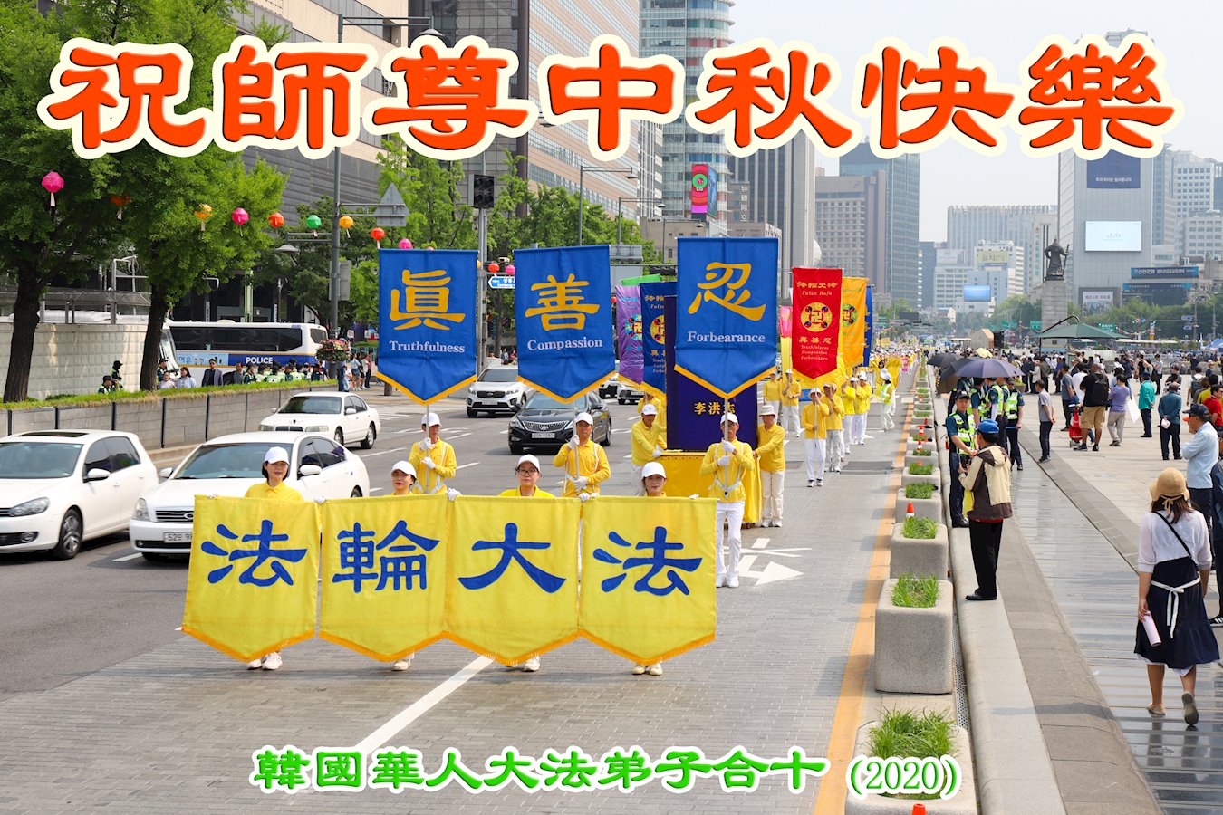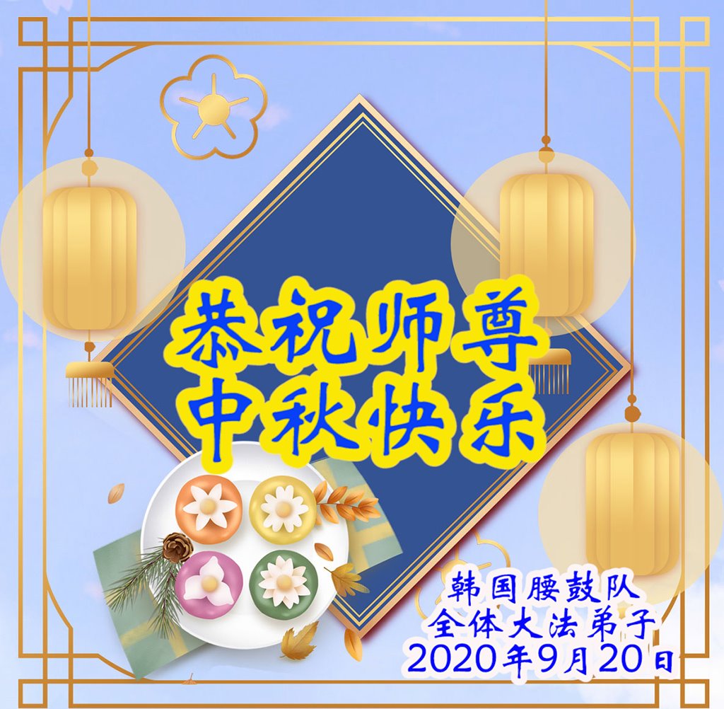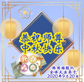 伟大的师尊您好!在2020庚子年中秋节来临之际,祝愿伟大的师尊中秋节快乐!弟子感恩师尊的教诲和点化!世事无常,唯有大法是亘古不变的真理!法轮大法好!真善忍好!师父好!韩国庆南一家四口大法弟子呈上!向师尊叩首! 韩国首尔新大方讲真相点全体大法弟子恭祝师尊中秋快乐!