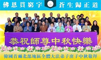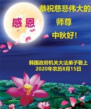 驻韩国的北朝鲜大法弟子恭祝师父中秋好! 韩国政府机关大法弟子恭祝慈悲伟大的师尊中秋好!