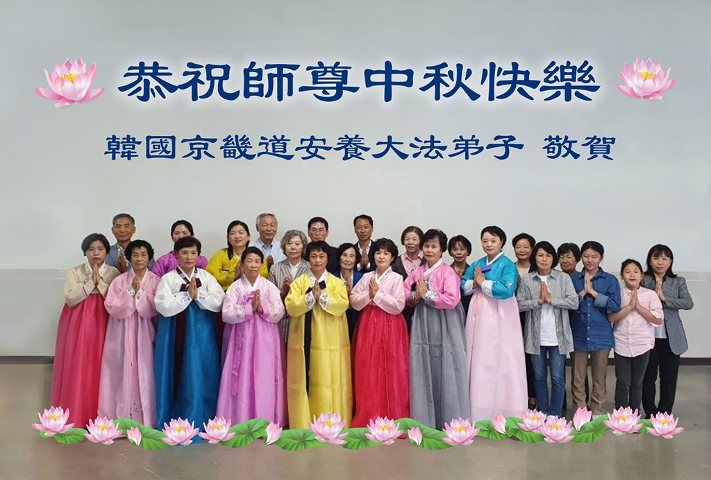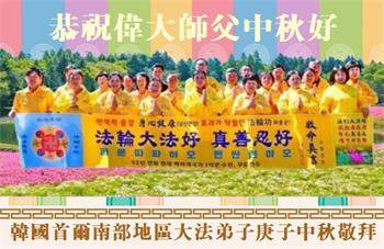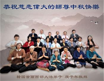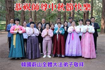 韩国江原、岭西全体大法弟子恭祝慈悲伟大的师尊中秋快乐!