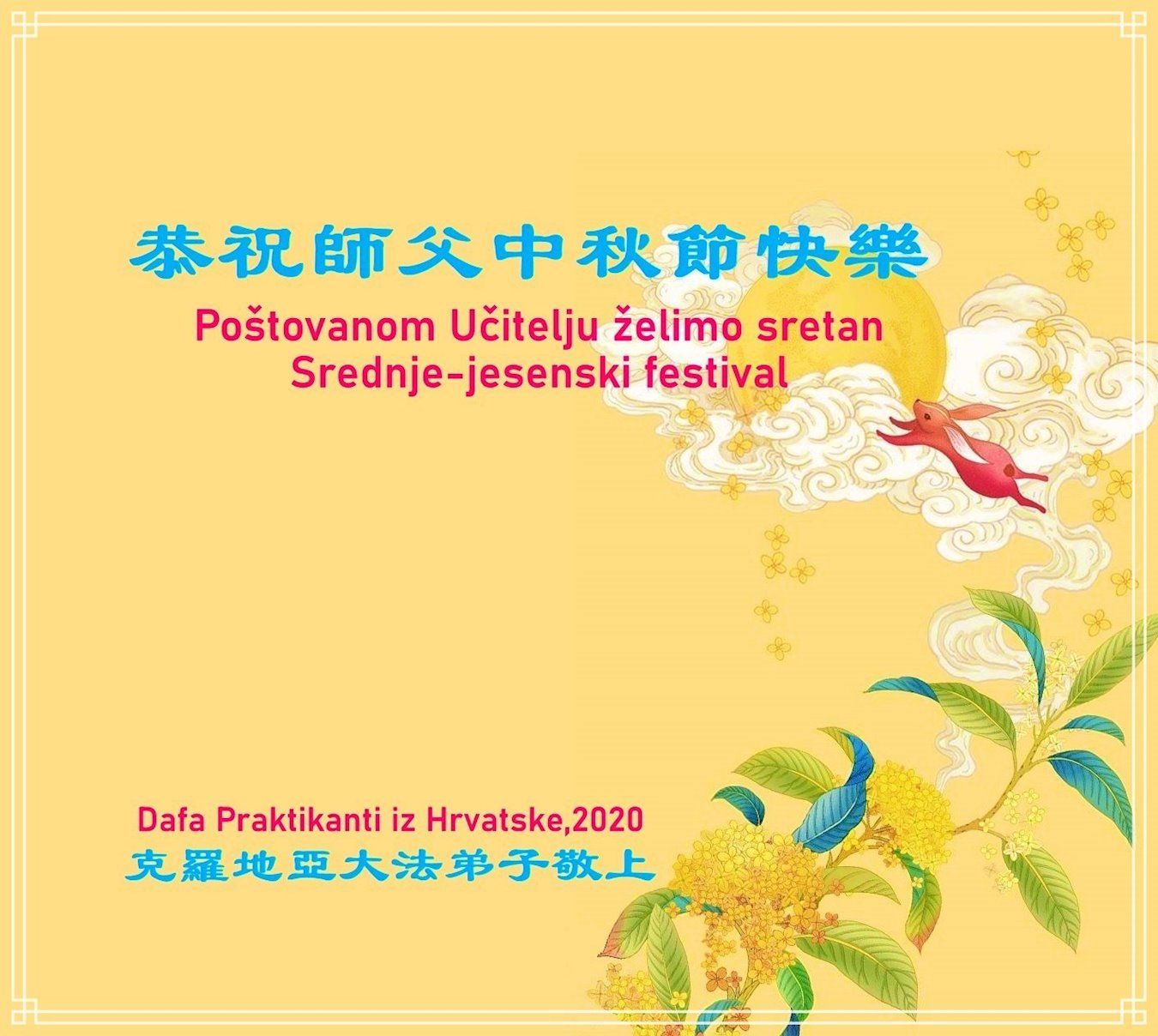 师父好!师父您辛苦了! 克罗地亚大法弟子恭祝师父中秋节快乐!