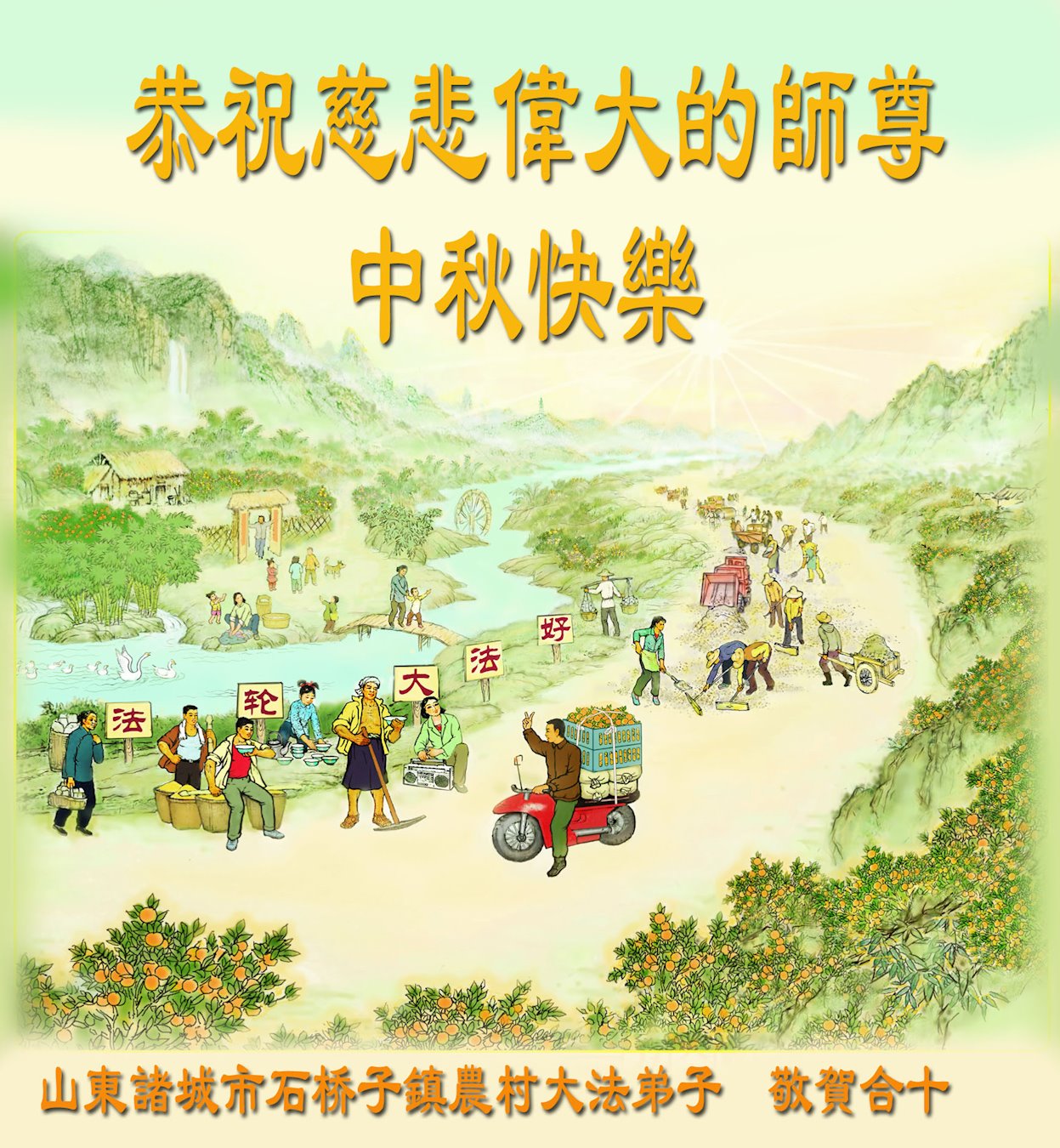 师父您好!在这二十年的修炼路上,是伟大的师父给了我一个健康的身体,大法使我心灵得到了升华!弟子听师父的话,信师信法,走好返本归真的路。谢谢伟大的师父!您辛苦了! 弟子双手合十叩拜师父! 山东省潍坊市寿光市农村大法弟子恭祝慈悲伟大的师尊中秋节快乐!