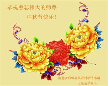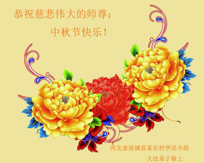 又是一年秋风送爽日,当思念的明月由缺变圆时,是家家户户团圆的时候。思念恩师,向师尊问好!在这里,作为山东潍坊一名农村大法弟子,恭祝师尊中秋快乐!愿世人众生皆得救度,愿我们大法弟子精進、再精進,共了师愿,惟愿师尊笑。 山东潍坊农村大法弟子敬上! 河北省保定市容城县某农村学法小组大法弟子祝师父中秋节快乐!