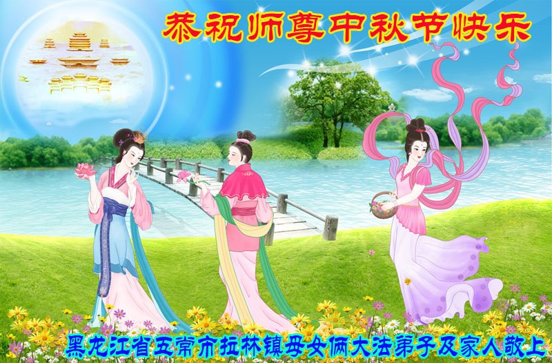 恭祝慈悲伟大的师尊中秋节快乐!感恩师尊! 黑龙江省哈尔滨母女大法弟子恭祝师父中秋佳节快乐!