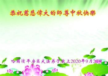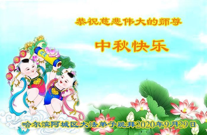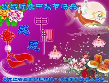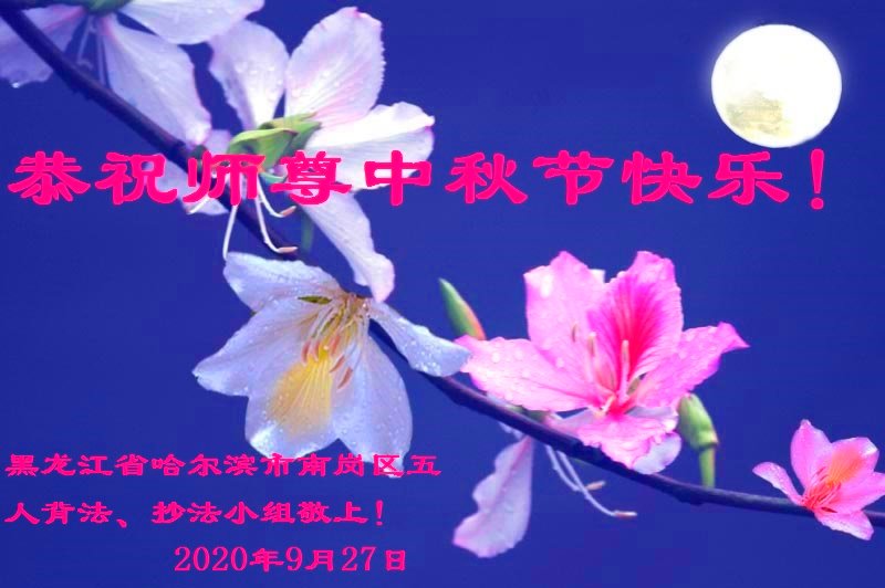 【明慧网二零二零年十月一日】 黑龙江省哈尔滨市五常市拉林镇一大法弟子及家人恭祝师尊中秋节快乐!