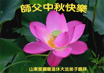 弟子感恩师尊慈悲救度!弟子知道我们每个大法弟子的提高,都浸透着师尊的心血和艰辛付出! 弟子一定珍惜自己走过的路,精進实修,早日圆满跟师父回家! 跪拜师尊!合十! 山东莱钢离退休大法弟子恭祝师尊中秋节快乐!