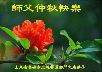 【明慧网二零二零年十月一日】 山东省泰安市土地管理部门大法弟子恭祝师尊中秋节快乐!