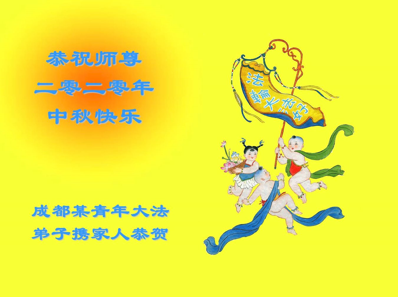 感恩师尊慈悲苦度,红朝将灭,弟子唯有做好三件事,方不负师尊救度之恩。 成都市锦江区一大法弟子全家三代敬上 二零二零年九月二十九日 四川省成都市一位大法弟子恭祝师尊中秋节快乐!