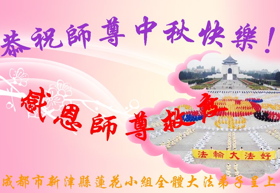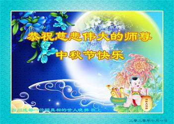四川成都市——大法弟子及全家人恭祝师尊中秋节快乐!