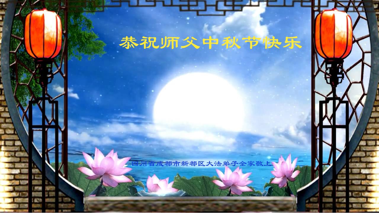 四川省成都市新都区大法弟子全家恭祝慈悲伟大的师父中秋节快乐!