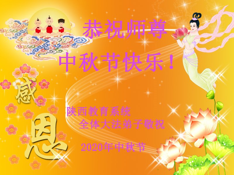 感恩师父的慈悲救度! 陕西教育系统大法弟子恭祝慈悲伟大的师尊中秋节快乐!合家团圆!