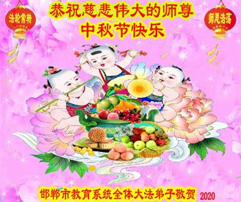 【明慧网二零二零年十月一日】 山东省潍坊市教育系统大法弟子恭祝师尊中秋节快乐!