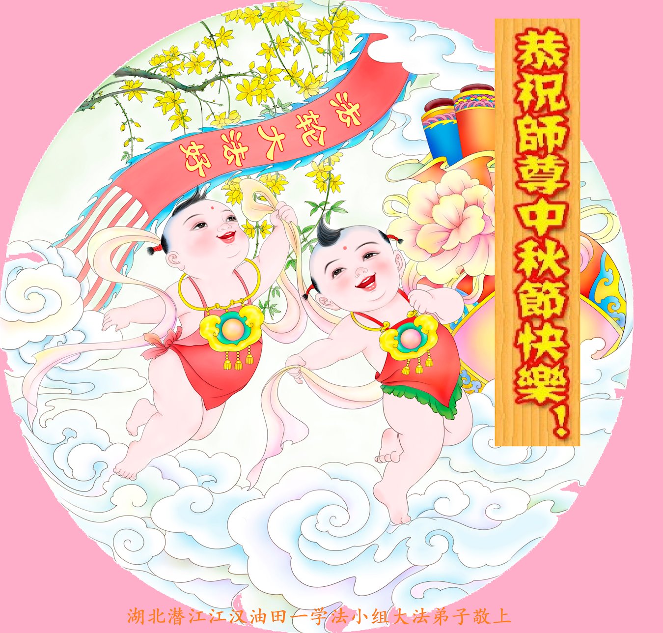 恭祝师尊中秋节快乐! 我们从小就跟随大人修炼,沐浴师父浩荡佛恩!大法教给我们真善忍宇宙法理,大法给我们开智开慧,让我们享有优秀生、好孩子的荣耀。谢谢师尊选择我们成为大法小弟子。遥望西岸,跪拜师尊! 湖北省荆州市公安县一学法组全体大法弟子恭祝师尊中秋好!