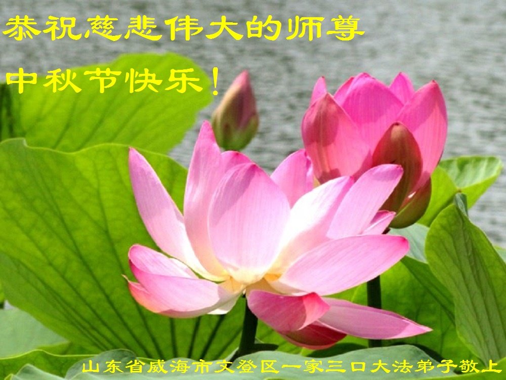 山东省威海市文登区一家三口大法弟子恭祝慈悲伟大的师尊中秋节快乐!