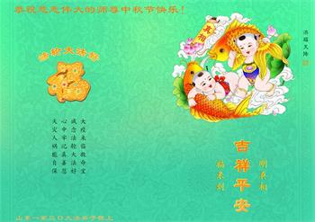 山东一家三口大法弟子恭祝师尊中秋节快乐!