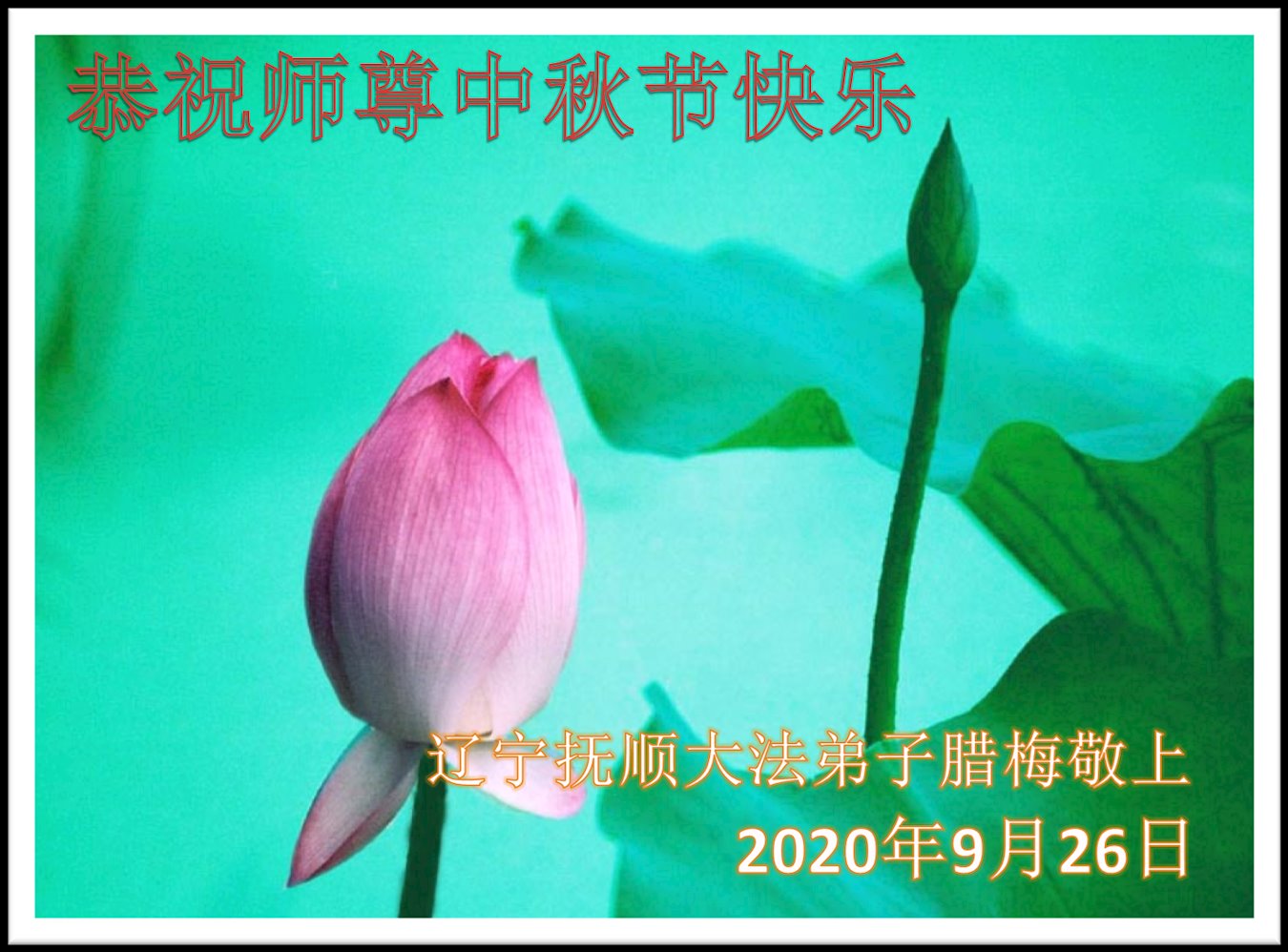 【明慧网二零二零年十月一日】 辽宁省抚顺市一名大法弟子恭祝师尊中秋快乐!