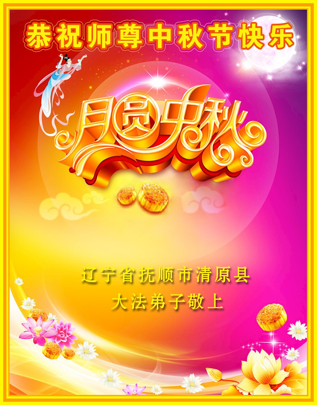 辽宁省抚顺大法弟子恭祝师尊中秋快乐!