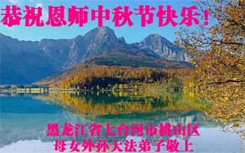 黑龙江省七台河市桃山区母女外孙大法弟子恭祝恩师中秋节快乐!