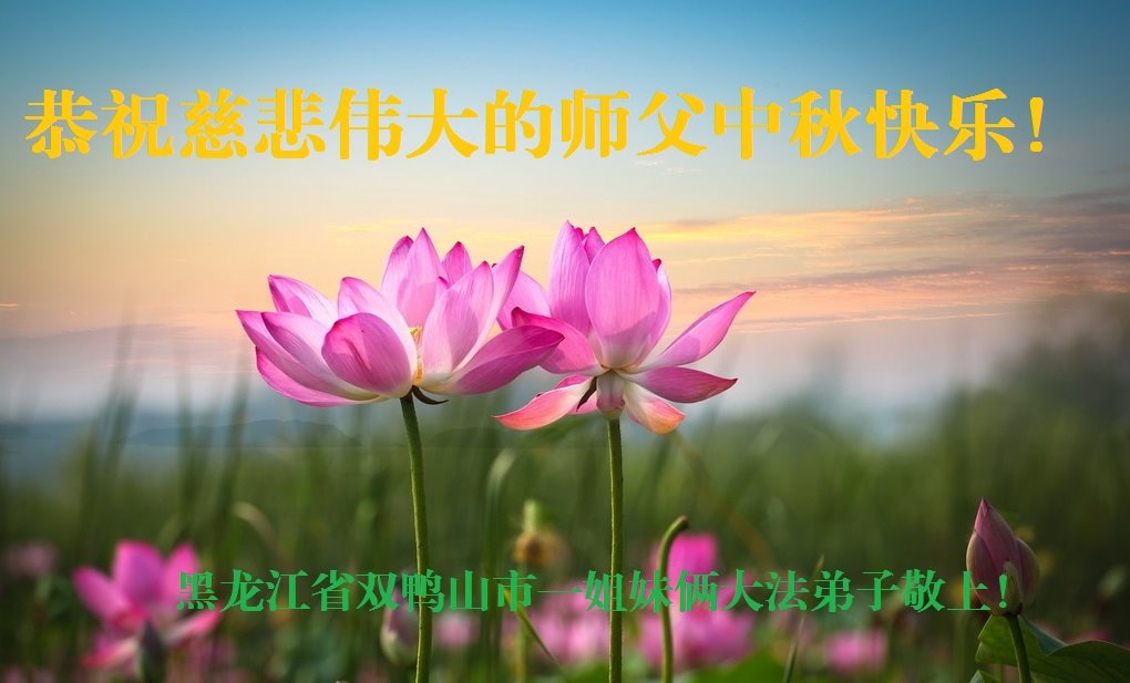 黑龙江省双鸭山市姐妹俩大法弟子恭祝慈悲伟大的师父中秋快乐!