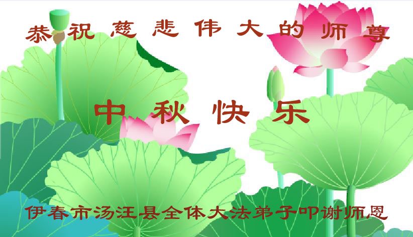 恭祝慈悲伟大的师父中秋快乐!感恩师父!弟子要努力修出纯善来,多救人。 黑龙江省双鸭山市一姐妹俩大法弟子敬上! 二零二零年九月二十七日 黑龙江省伊春市汤汪县全体大法弟子恭祝慈悲伟大的师尊中秋快乐!