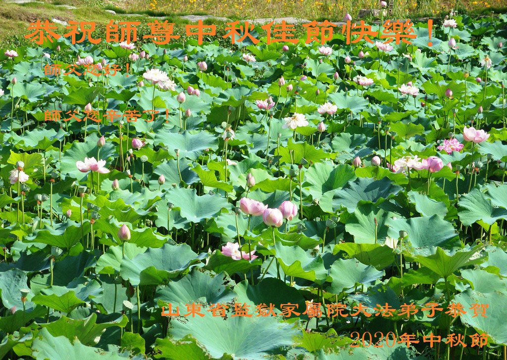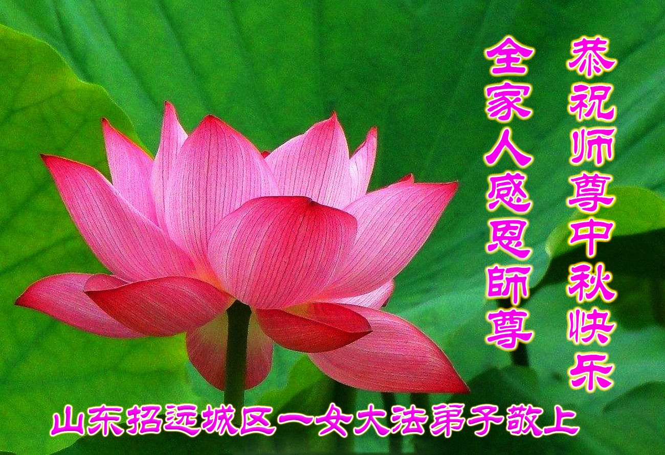 师父您好! 我们从来没有见过您的面,非常想念您。是您把这么好的大法传给我们,救了我们的命,我们感激的心情没有法表达。我们也没有什么回报师父的大恩大德,我们只有一颗向善的心献给您,我们只有坚信师父和大法,师父您说什么,我们就相信什么,只要是师父叫我们做的,我们都会毫不犹豫的去用心做好,因为师父叫我们做的都是最好的,都是为了我们的提高和圆满而做的。师父为我们操尽了心。我们一定会做好我们应该做的三件事,不辜负师父对我们的慈悲苦度。 谢谢慈悲伟大的师父!师父您辛苦了! 山东省监狱家属院的大法弟子恭祝慈悲伟大的师尊中秋佳节快乐!