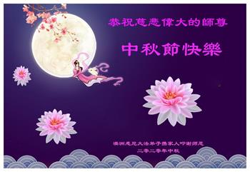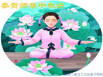 新西兰奥克兰中区学法组的大法弟子恭祝慈悲伟大的师尊中秋佳节好!我们一定学好法,做好师父安排的“三件事”,走正走好最后的路,圆满跟师父回家,请师父放心! 澳大利亚悉尼母子大法弟子恭祝师父中秋快乐!