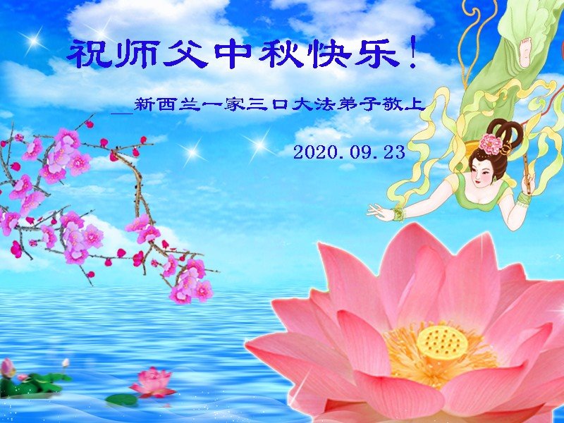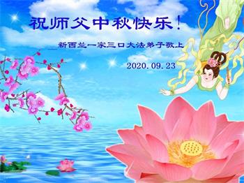 新西兰一家三口大法弟子恭祝师父中秋快乐!