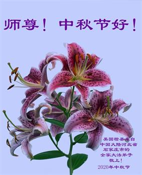 恭祝慈悲伟大的师父中秋快乐!感恩师尊慈悲救度 弟子一定修炼如初 信师信法坚定不移 正念正行配合整体 救度众生抓紧时间 艰难困苦勇往直前 北京大法弟子敬上 2020年中秋 美国纽约法拉盛大法弟子恭祝慈悲伟大的师父中秋节快乐!