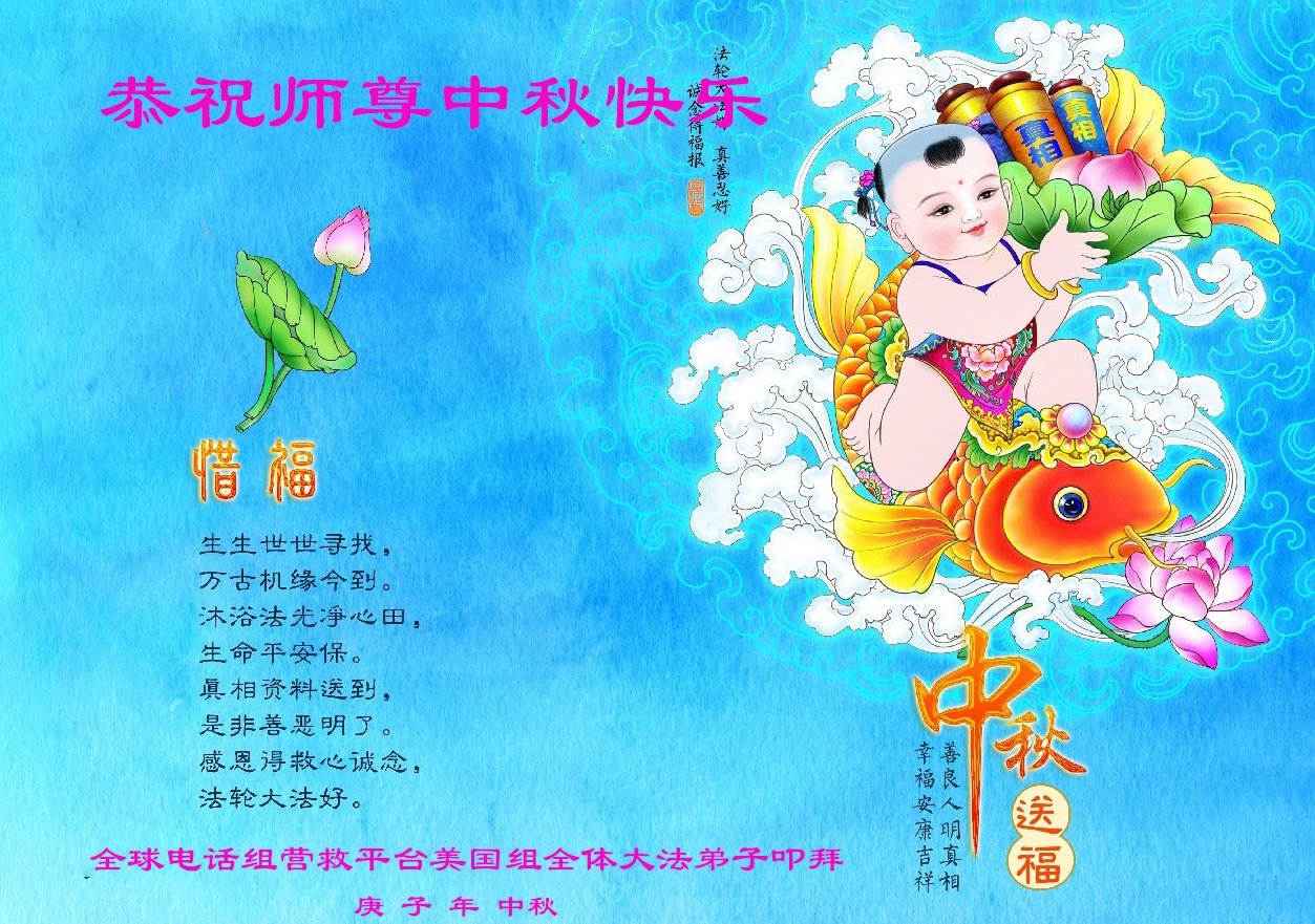恭祝慈悲伟大的师父中秋节快乐! 幸运得大法 牢记真善忍 感恩师尊救度 弟子叩谢师尊 全球电话组营救平台美国组全体大法弟子恭祝师尊中秋快乐!
