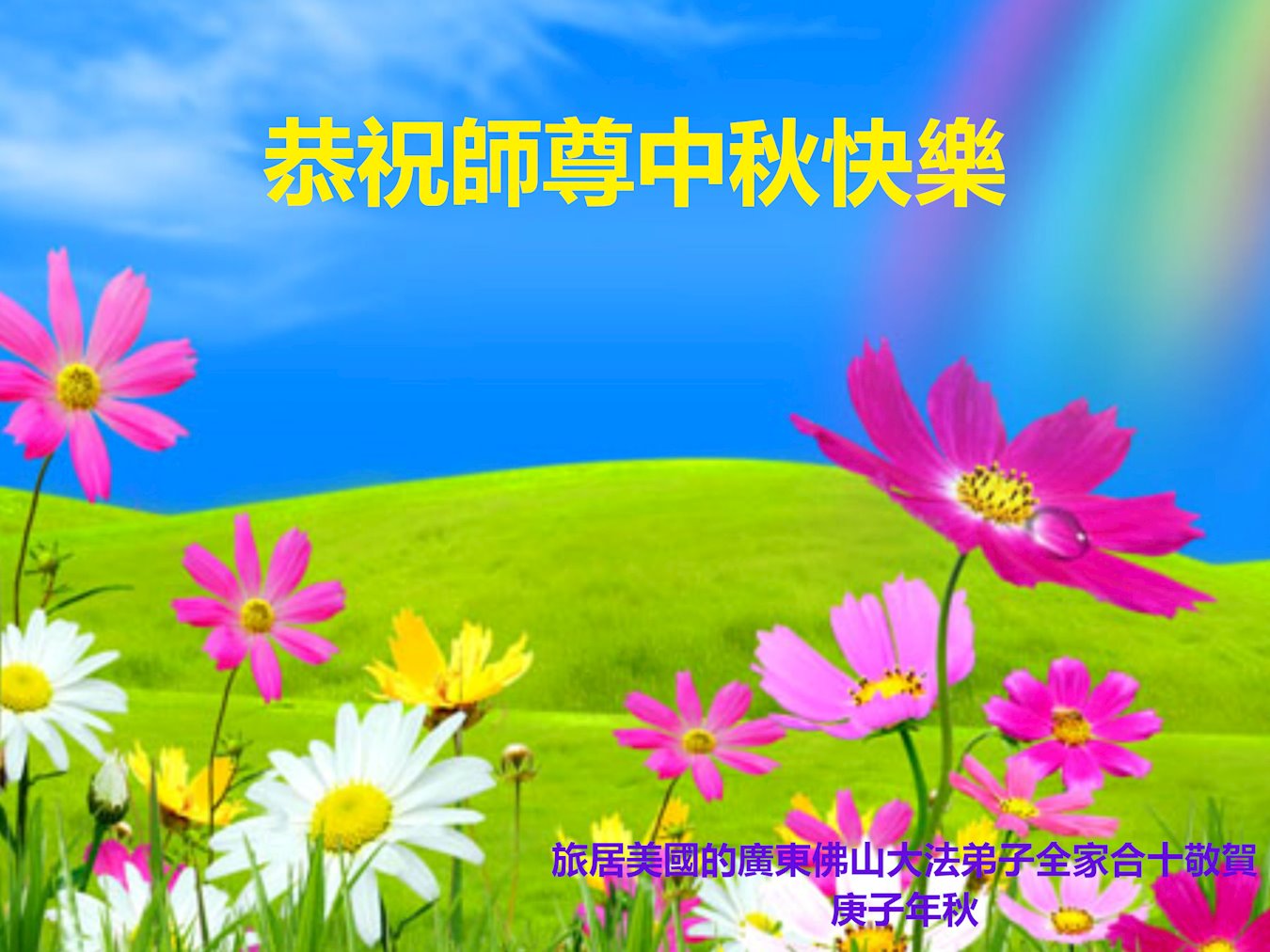 感恩师尊慈悲苦度!弟子们信师信法的坚定正念决不动摇!永不改变!听师父的话:“走好最后所剩不多的路”。 广州和美国佛州两名大法弟子敬祝 二零二零年九月二十七日 旅居美国的广东佛山大法弟子全家恭祝师尊中秋快乐!