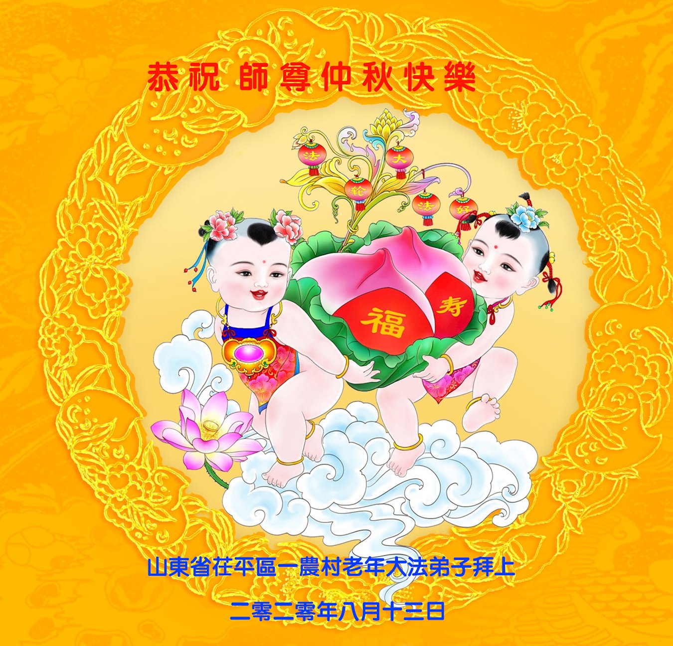 正法以过二十一年,在师尊无微不至的保护下,弟子闯过了一关又一关,磕磕绊绊走到今天。没有师尊的保护万万过不来的,不忘师恩难以回报,感谢师尊! 弟子想念师尊,盼望与师尊早日团圆。 河南周口农村一学法小组敬上 二零二零年九月二十九日 山东省茌平区一农村老年大法弟子恭祝师尊中秋快乐!