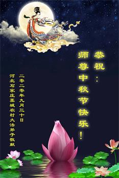恭祝师尊中秋节快乐! 二零二零年九月廿七日 河北石家庄藁城农村大法弟子恭祝慈悲伟大的师尊中秋节快乐!