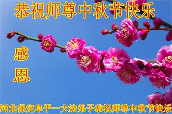 恭祝师尊中秋节快乐!感恩师尊慈悲苦度! 河北涿州全体大法弟子敬上,叩拜师尊! 2020年9月30日 河北保定阜平一大法弟子恭祝师尊中秋节快乐!