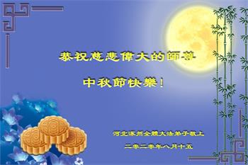 中秋节是合家团圆的节日,弟子十分想念慈悲伟大的师尊,弟子唯有精進实修做好三件事才是对师尊最好的报答。恭祝师尊中秋快乐! 河北省保定顺平一大法弟子恭祝师尊中秋节快乐!