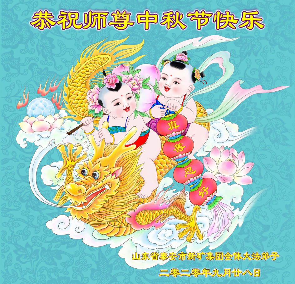 恭祝师尊中秋节快乐!感恩师尊的慈悲救度! 山东省泰安市新矿集团全体大法弟子恭祝师尊中秋节快乐!