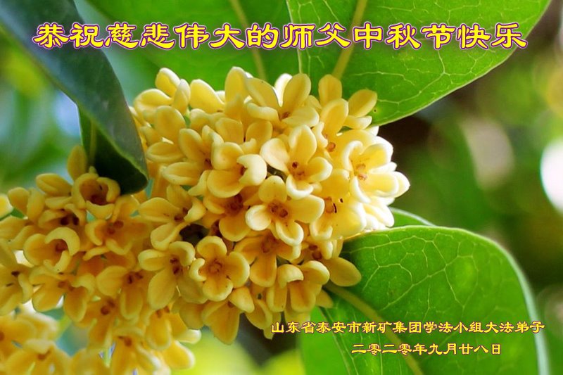泰安市新矿集团全体大法弟子恭祝师尊中秋节快乐! 二零二零年九月廿八日 山东省泰安市新矿集团学法小组大法弟子恭祝慈悲伟大的师父中秋节快乐!