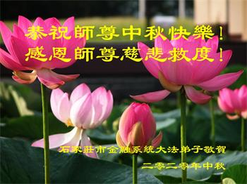 中秋佳节之际,倍念师恩,蒙受浩荡佛恩,一路走来,无力报答点滴,唯有更加精進,修得人心无漏,慈悲救度众生,成就大愿。 哈尔滨市文化系统一大法弟子叩拜 河北省石家庄市金融系统大法弟子恭祝师尊中秋快乐!感恩师尊慈悲救度!