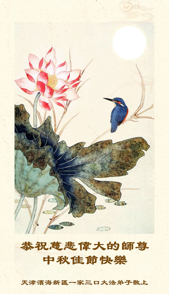 谨记师尊教诲,修好自己,救度众生,不忘来世愿,走好最后路。 天津市一大法弟子恭贺恩师中秋节快乐!
