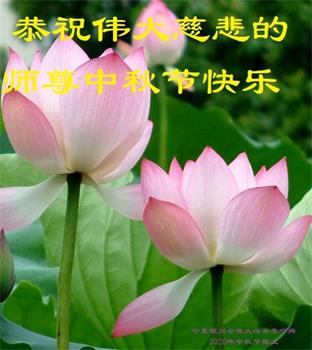 我们一定不辜负师尊的教诲,做好三件事,修好自己、多救人! 叩谢师尊的慈悲苦度! 宁夏银川市大法弟子恭祝师父中秋节快乐!