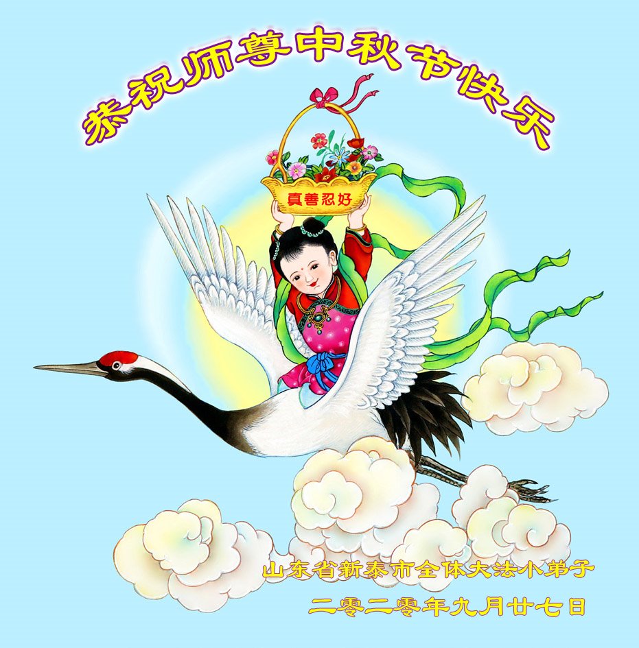 尊敬的师父: 您好! 我和家中大法小弟子恭祝师父中秋节快乐!弟子在修炼路上走过弯路,师父没有放弃我这个不争气的弟子,让师父操了太多的心。弟子无以为报,唯有精進实修,以法为师,助师正法,做好三件事,兑现史前大愿,圆满随师父回家! 弟子叩谢师恩! 山东平原大法弟子 2020年9月29日 山东威海大法小弟子恭祝慈悲伟大的师尊中秋节快乐!