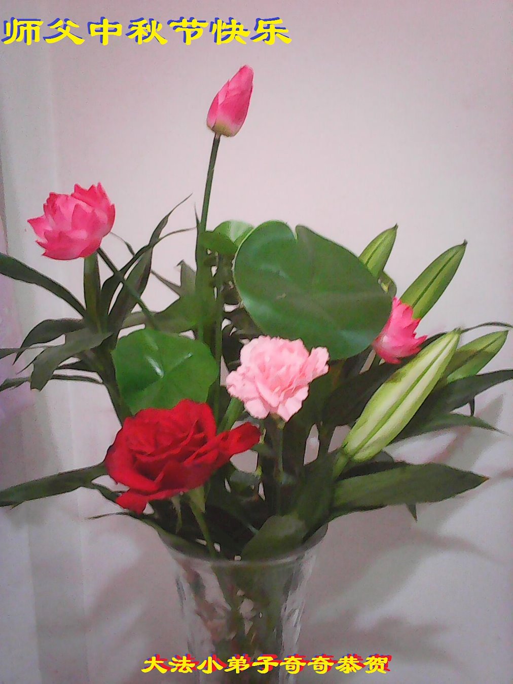 师尊您辛苦了。小弟子跪拜师尊!谢师恩!合十! 云南昆明市大法小弟子恭祝师尊中秋快乐!
