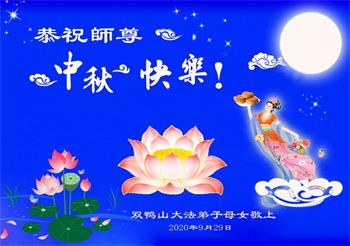 辽宁省沈阳市大法小弟子敬上 河北省沧州市泊头市一学法组的大法小弟子恭祝师尊中秋节快乐!