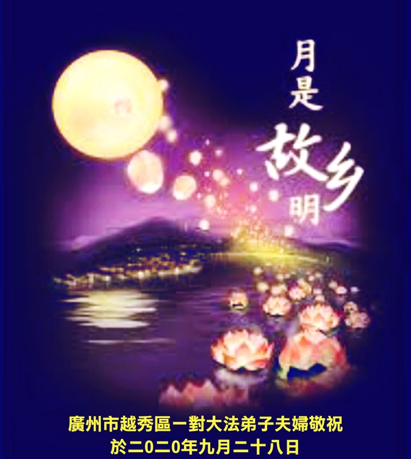 【明慧网二零二零年十月一日】 广东省广州市一大法弟子恭祝师尊中秋快乐!