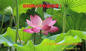 师父好! 弟子感恩慈悲伟大的师父的洪恩度化,不经风雨,难成金刚,将勇猛精進,再度升华,同时恭祝师父中秋节快乐! 辽宁省本溪市大法弟子恭祝师尊中秋节快乐!