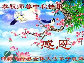 【明慧网二零二零年十月一日】 河北省邯郸市鸡泽县全体大法弟子恭祝慈悲伟大的师父中秋节快乐!