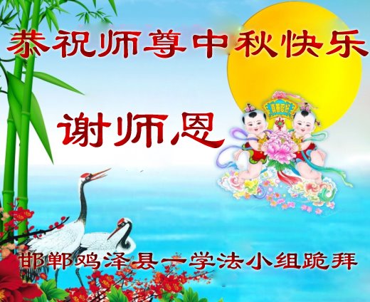 感恩师尊慈悲救度!叩拜师尊! 河北省邯郸市曲周县城一学法小组大法弟子恭祝师尊中秋节快乐!