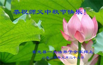 恭祝师父中秋节快乐! 东光县一大法弟子全家拜贺 2020年9月29日 河北省邯郸市大法弟子恭祝师父中秋快乐!