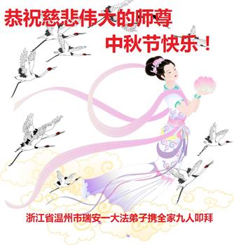 浙江省温州市瑞安大法弟子一家九人恭祝师父中秋节快乐! 浙江省温州市瑞安大法弟子恭祝师尊中秋快乐!