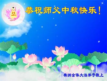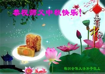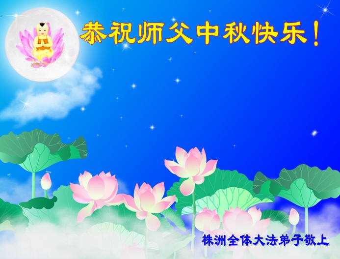 娄底大法弟子恭祝师父中秋节快乐! 尖世茫茫易沉沦 幸得大法回归路 邪恶猖獗志不移 修己救人兑誓约 中秋佳节念师恩 遥寄祝愿弟子心 娄底同修莫松劲 除恶救人迎师归 2020年9月30日 湖南株洲全体大法弟子恭祝慈悲伟大的师父中秋快乐!