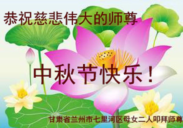 甘肃省兰州市七里河区母女二人大法弟子恭祝师尊中秋快乐!